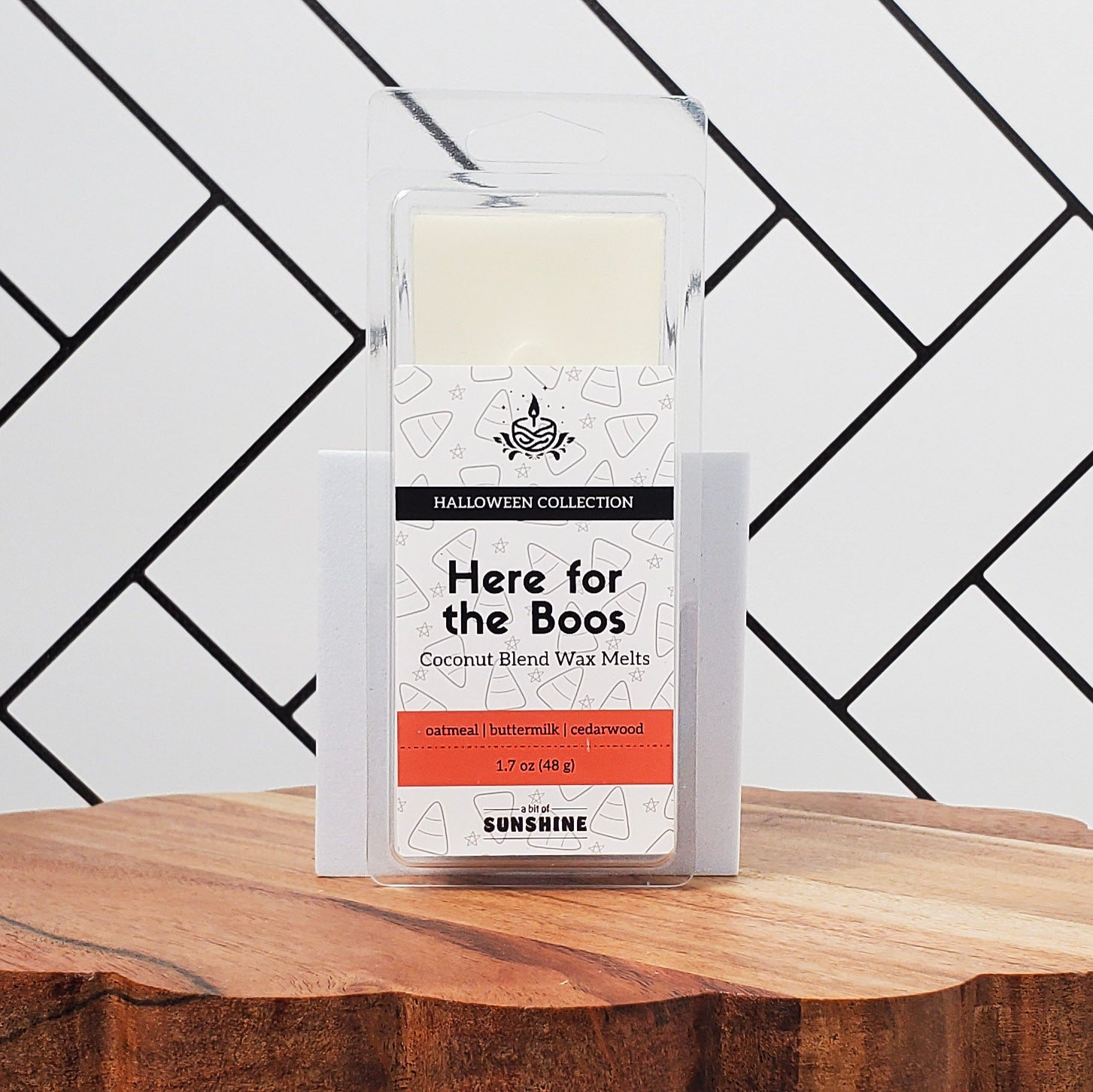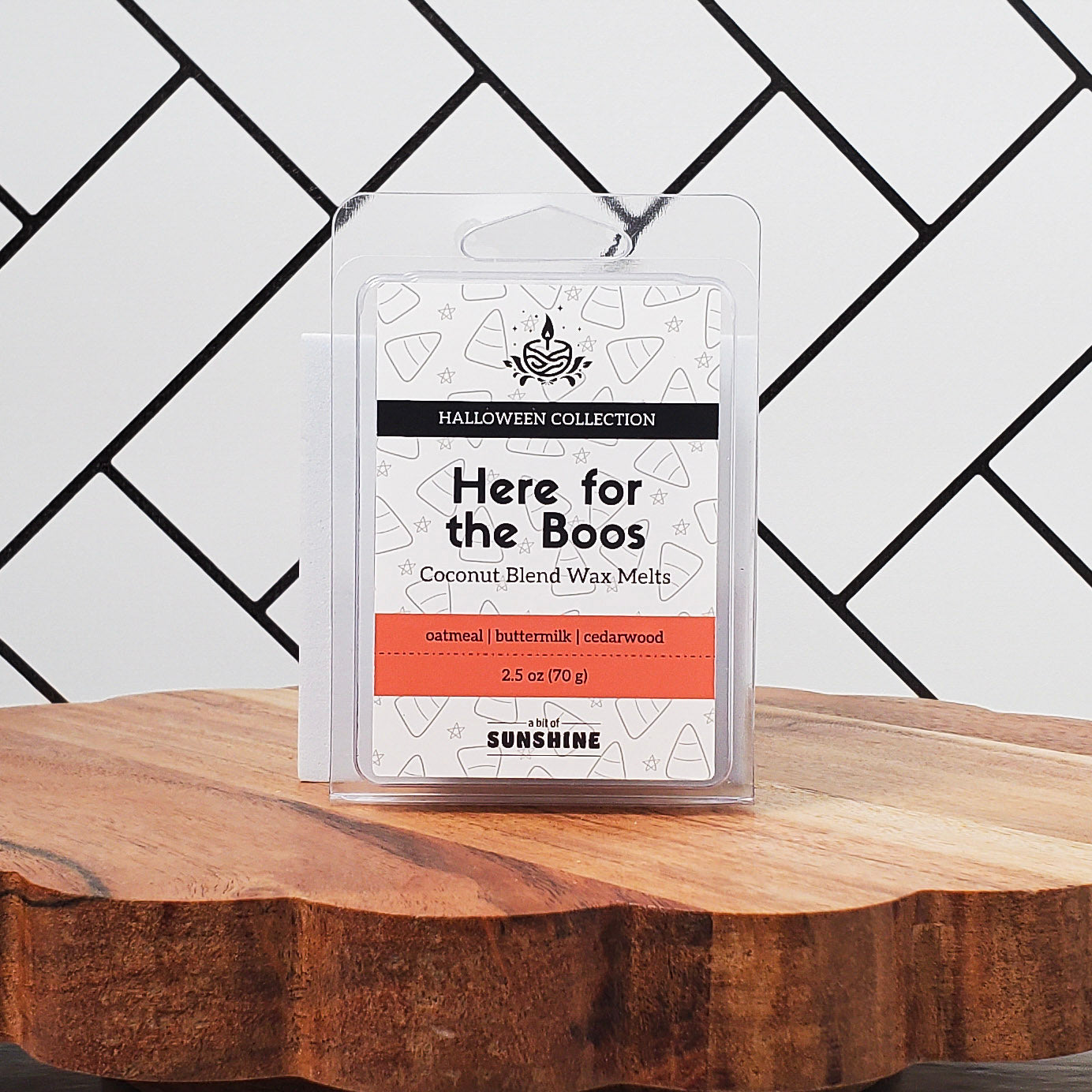 Cozy up to the Halloween spirit with our "Here for the Boos" wax melts.